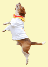 このゲームは、フリスビーのようにアイテムをイヌに追いかけさせてキャッチさせるのではなく、 ハンドラーがイヌの待機している場所に向かってアイテムを投げ、 ほぼその場所でキャッチさせます。イヌが寄ってきたりしないように、しっかり待たせておきましょう。