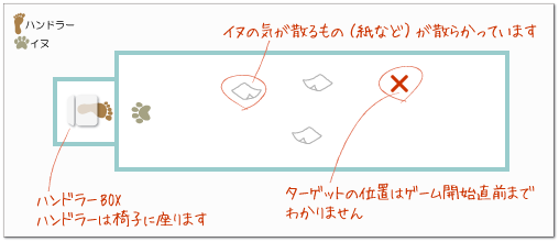 「失格になる行為」「注意」「ポイント」などが表示されます。必ずお読み下さい。- ハンドラーはハンドラーBOXの椅子に座り、